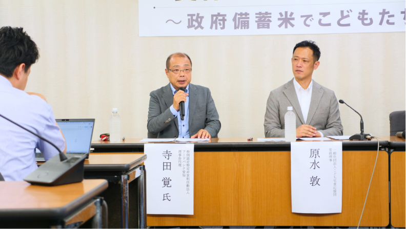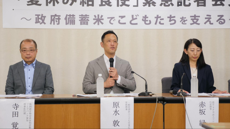 物価高に加え、米の価格高騰と米不足を背景に、困窮する子育て家庭はさらに厳しい生活を強いられています。そのような中、給食の無い夏休みを迎える危機感に関心が集まり、沢山の報道関係者の方々にお越しいただきました。本プロジェクトを共同で実施する各法人の登壇者が、緊急支援の重要性を熱く語りました。