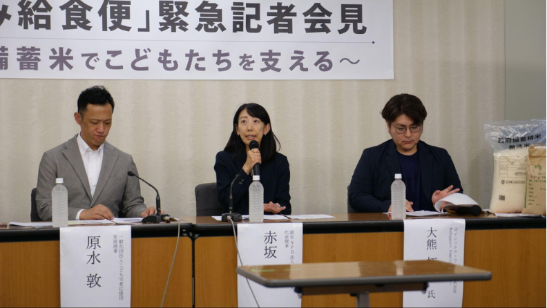 記者会見当日には、各ご家庭へお届けする政府備蓄米が各地に到着しはじめており、各地の支援者から「これを持って、心配だった親子に持っていきます」と言った声が早速届いていることも伝えました。