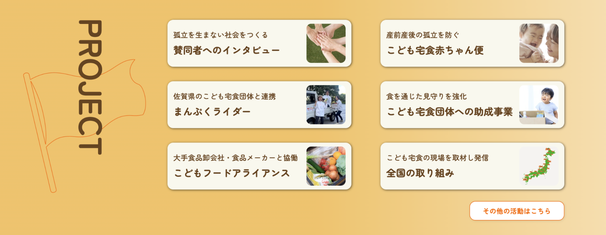 「こども宅食を応援したい」ページでは、私たちが目指す社会や、活動内容を凝縮してお伝えしています。