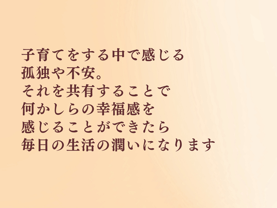 子育てをする中で感じる孤独や不安。それを共有することで何かしらの幸福感を感じることができたら毎日の生活の潤いになります。一緒に時間を過ごし、帰る時には抱えていた何かをふっと開放して、フラットな心持ちになってもらいたいという思いが、活動の原点です。