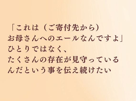「品物も嬉しいけれど、家に来てくれる人がいる事が嬉しい」──お母さんはそう思いを聞かせてくれました。