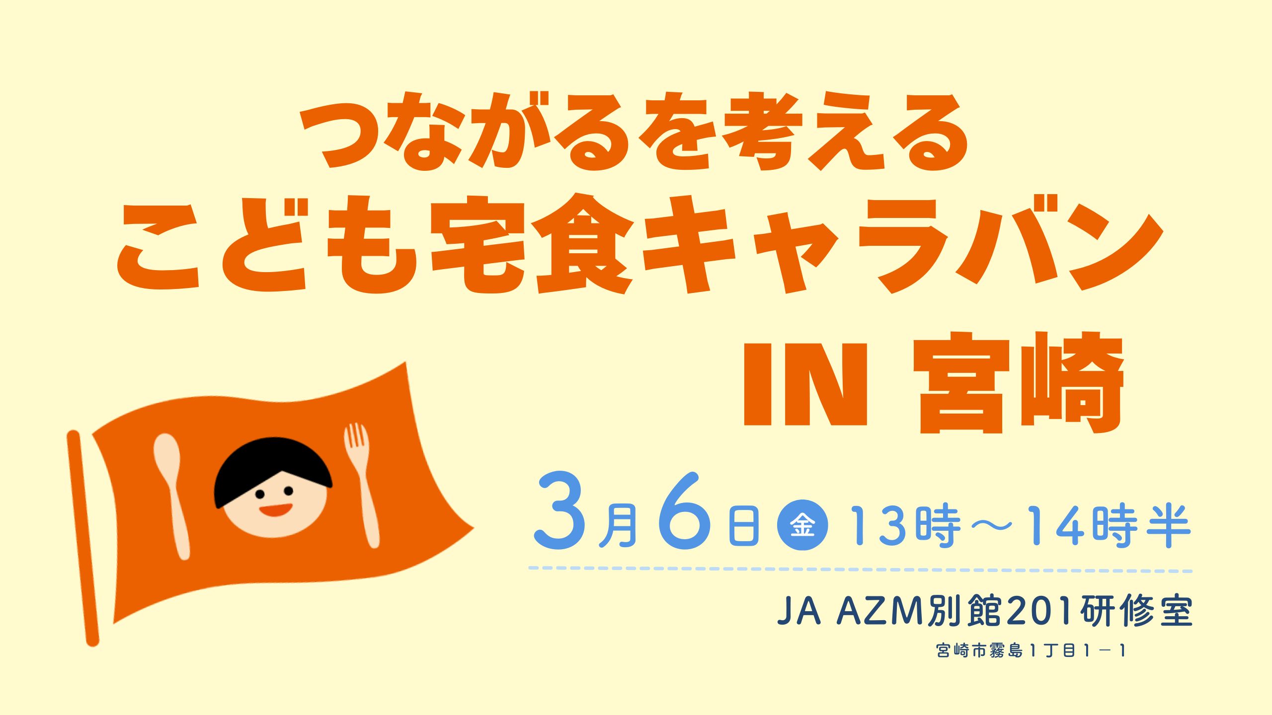 今回のキャラバンでは、こども宅食の先進地域である宮崎で、どのような活動が実施され、広がっているのか、今求められている支援は何かなど、宮崎で親子の支援に携わられている皆さんとともに、考えるきっかけづくりとなる会を企画いたしました。皆さんのご参加をお待ちしております。